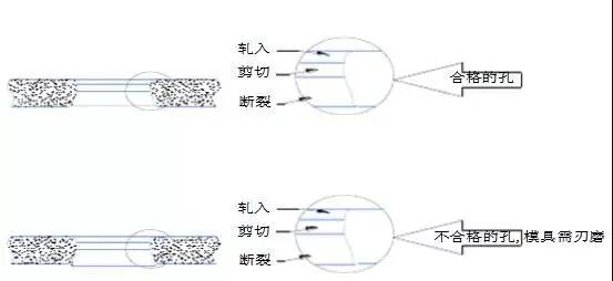 (2)檢查沖孔質(zhì)量,是否有較大的毛刺產(chǎn)生?(見圖)